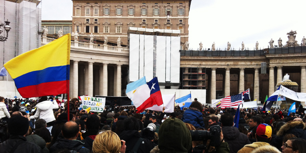 Mar de gente e bandeiras na Praça de São Pedro / Foto: Clarissa Oliveira