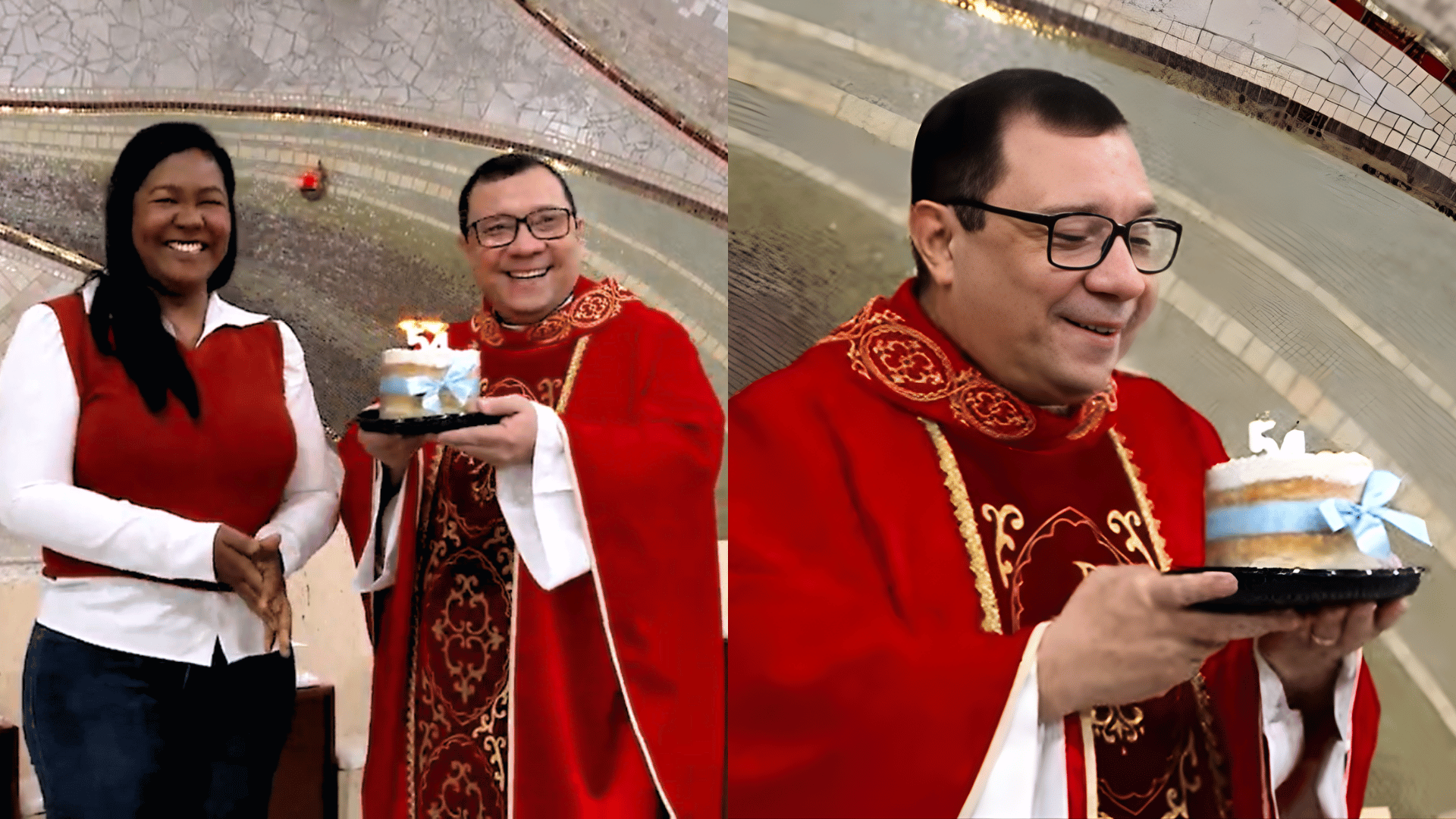 Ao final da Santa Missa, em nome da Comunidade Canção Nova, o missionário Orlando Júnior fez uma singela homenagem ao presbítero, que recebeu um bolo de aniversário. “Gostaríamos de manifestar a Deus a nossa gratidão pelo dom da sua vida”, disse o cantor. O sacerdote apagou as velinhas e manifestou: “Obrigado pelo carinho! Peço orações!”