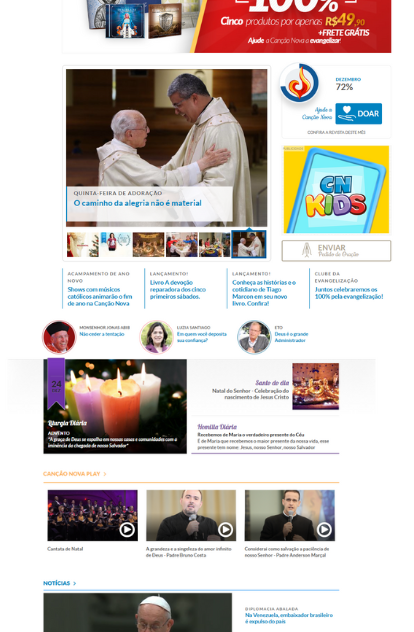 Após dois anos, o Portal Canção Nova passou por uma reestruturação com o objetivo de aprimorar a experiência do usuário.O layout da capa e de alguns canais foi redesenhado, o design ficou mais clean e o acesso mais rápido