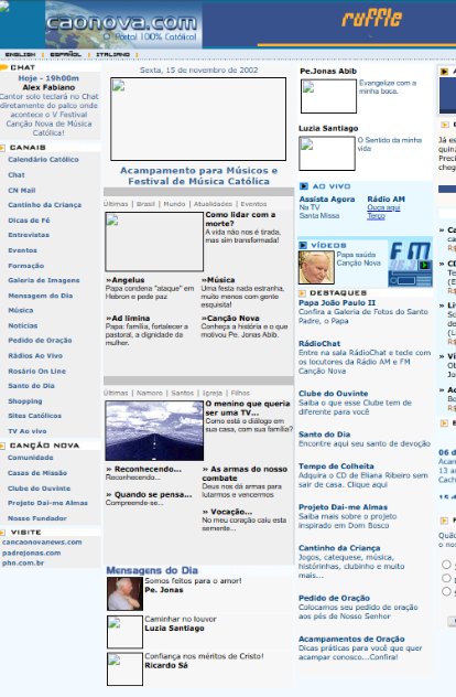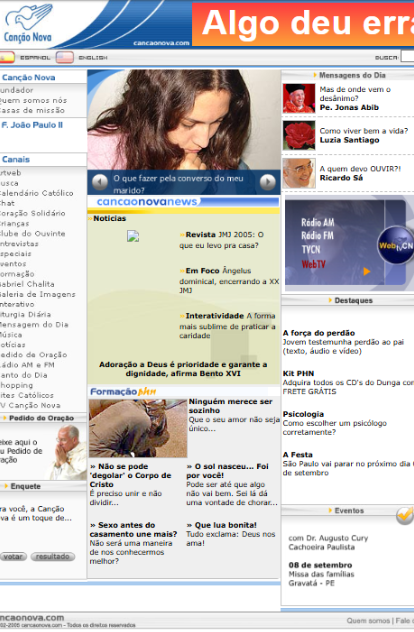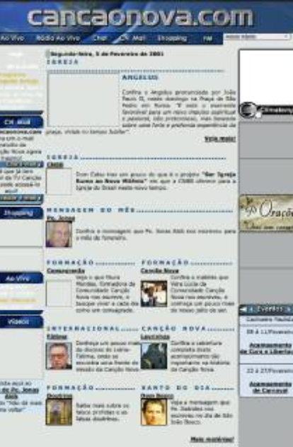 Terceiro layout do Portal Canção Nova, que passou por atualizações nos anos seguintes.A estrutura do site deixou a navegação mais intuitiva e o canal da WebTVCN ganhou destaque na capa.
