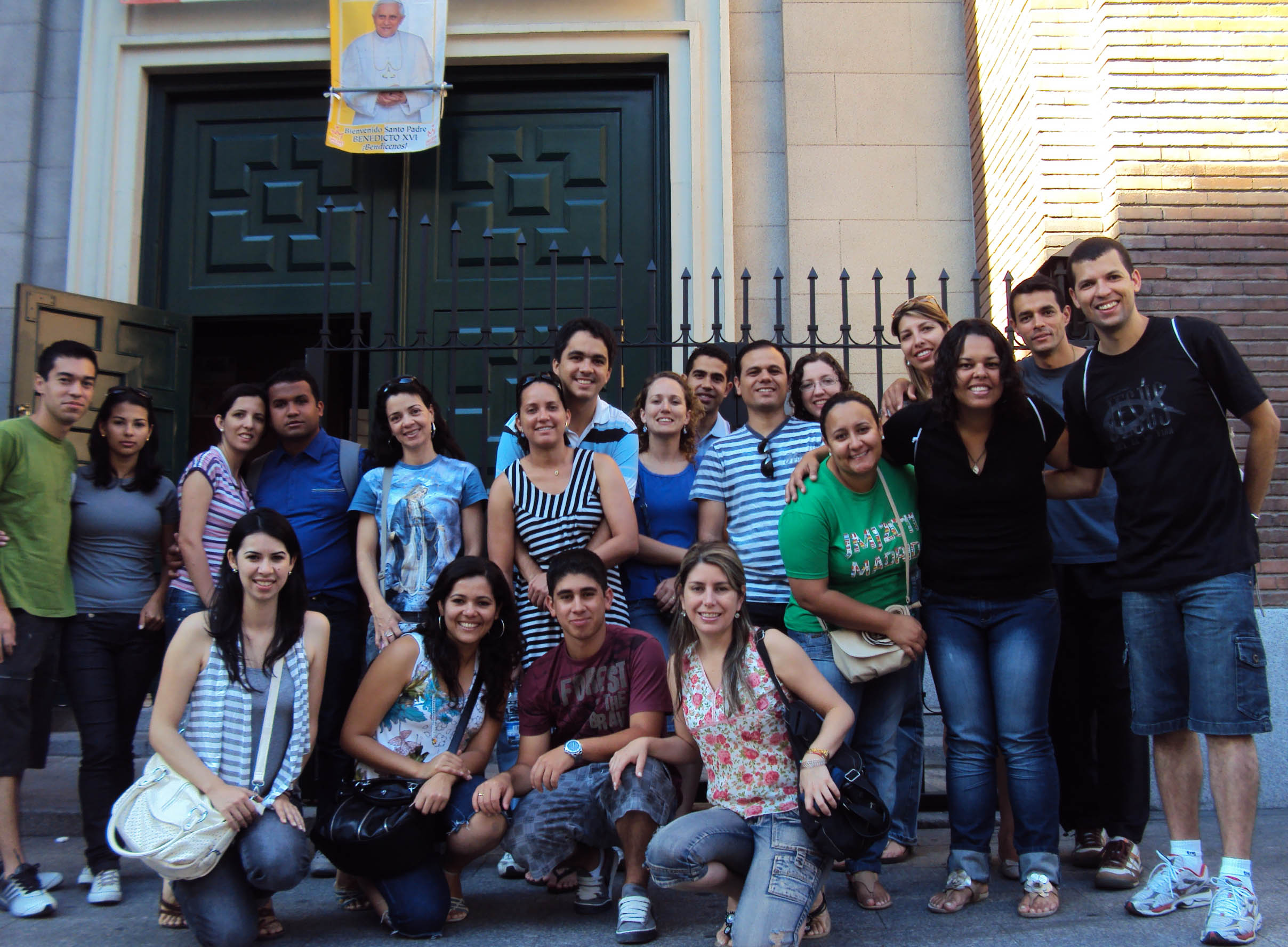 Priscila reunida com outros jovens durante a JMJ em Madri. Para a jovem, união é um ponto forte da JMJ (Foto: Arquivo Pessoal)