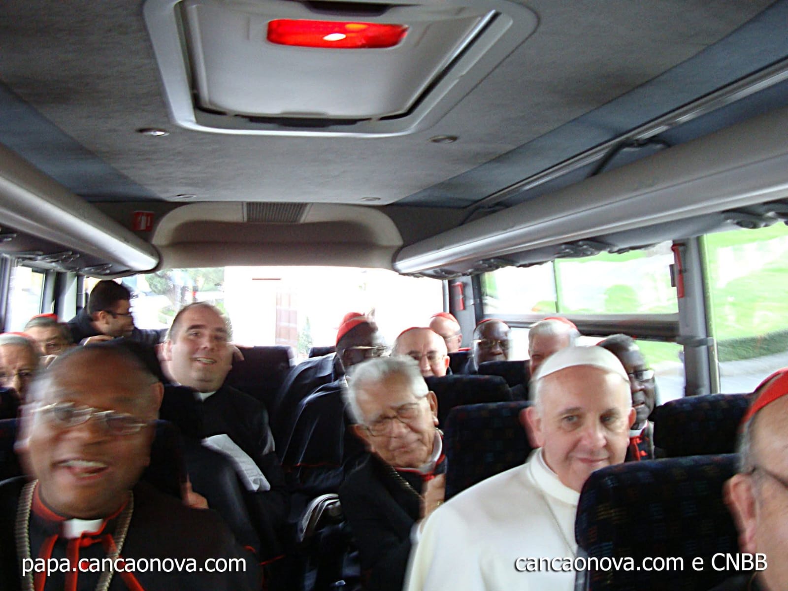 Os cardeais presentes no ônibus levaram um susto quando o Pontífice entrou no veículo e sentou-se ao lado de Dom Raymundo Damasceno, cardeal arcebispo de Aparecida (SP). “Conversamos como conversam dois velhos amigos, já que nós somos conhecidos”, disse Dom Raymundo.