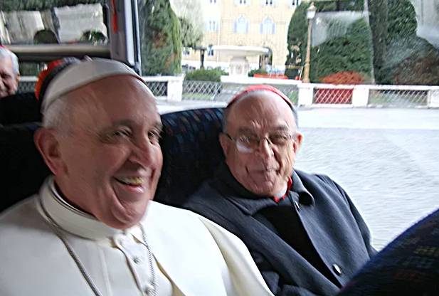 Papa Francisco no ônibus com os cardeais / Foto: Mons. Antonio Luiz Catelan Ferreira