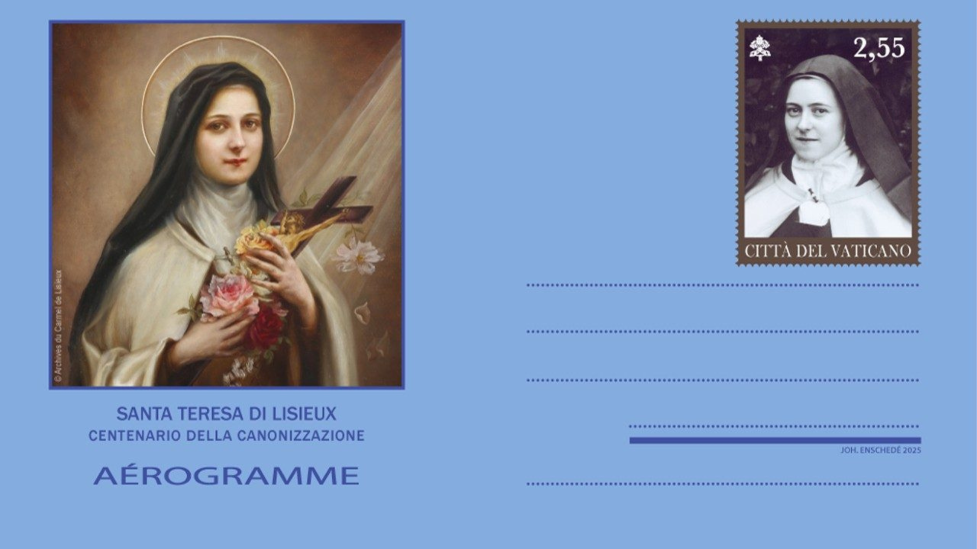 Aerograma com selo em homenagem aos 100 anos da canonização de Santa Teresinha do Menino Jesus / Foto: Reprodução Vatican News