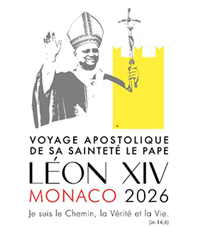 O logotipo para a viagem apostólica de um dia do Pontífice ao Principado de Mônaco também foi divulgado pela Sala de Imprensa da Santa Sé. A identidade visutal apresenta, na parte superior esquerda, a imagem em preto e branco de Leão XIV, sorridente e abençoando; com as vestes litúrgicas, a mitra e o báculo ele expressa a dimensão espiritual e pastoral da visita. Já à direita do logotipo, a figura estilizada da torre do Palácio do Príncipe de Mônaco, que remete à identidade e à soberania do Principado. A torre é toda de cor amarela clara, de modo que toda a parte superior, vista em seu conjunto, remete à bandeira do Vaticano.