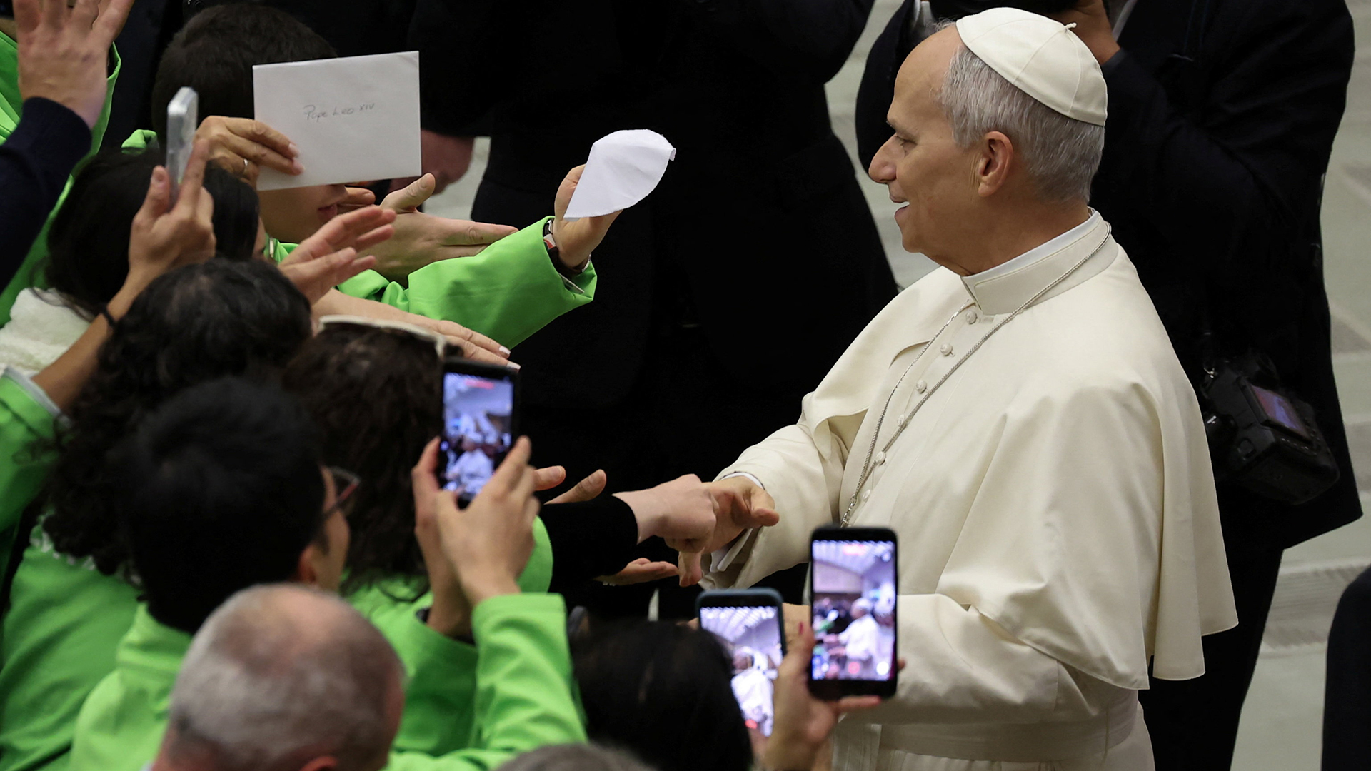 Papa Leão XIV durante audiência especial para voluntários do Jubileu, na Sala Paulo VI, no Vaticano, neste sábado, 6 / Foto: Hans Lucas via Reuters Connect