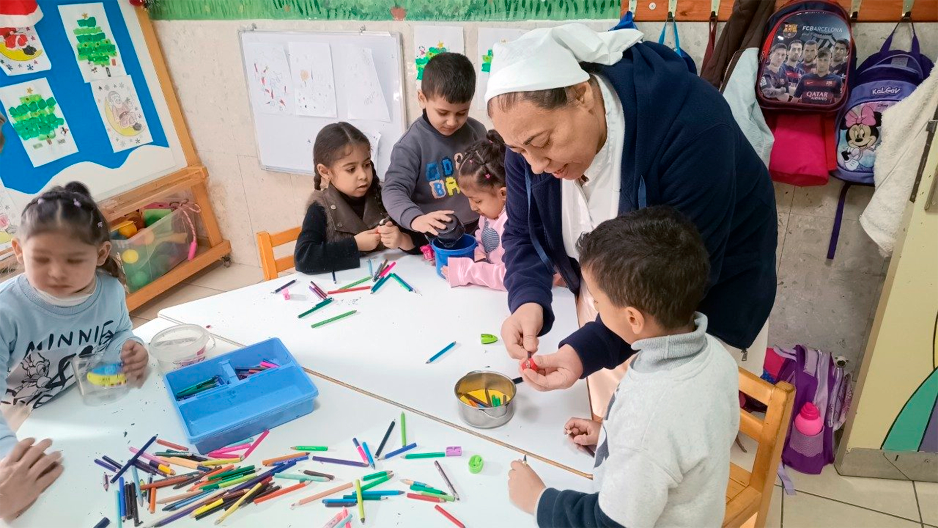 Esse apoio, no entanto, é limitado no tempo. “Podemos acompanhá-las apenas até os seis anos de idade”, continua a irmã, “e quando precisam partir, é sempre doloroso. Depois, não sabemos qual será o caminho delas, qual futuro as aguarda. É por isso que nossa presença aqui, em Belém, é tão importante: para cuidar delas todos os dias, enquanto pudermos.” Elas são então entregues ao sistema estatal palestino.