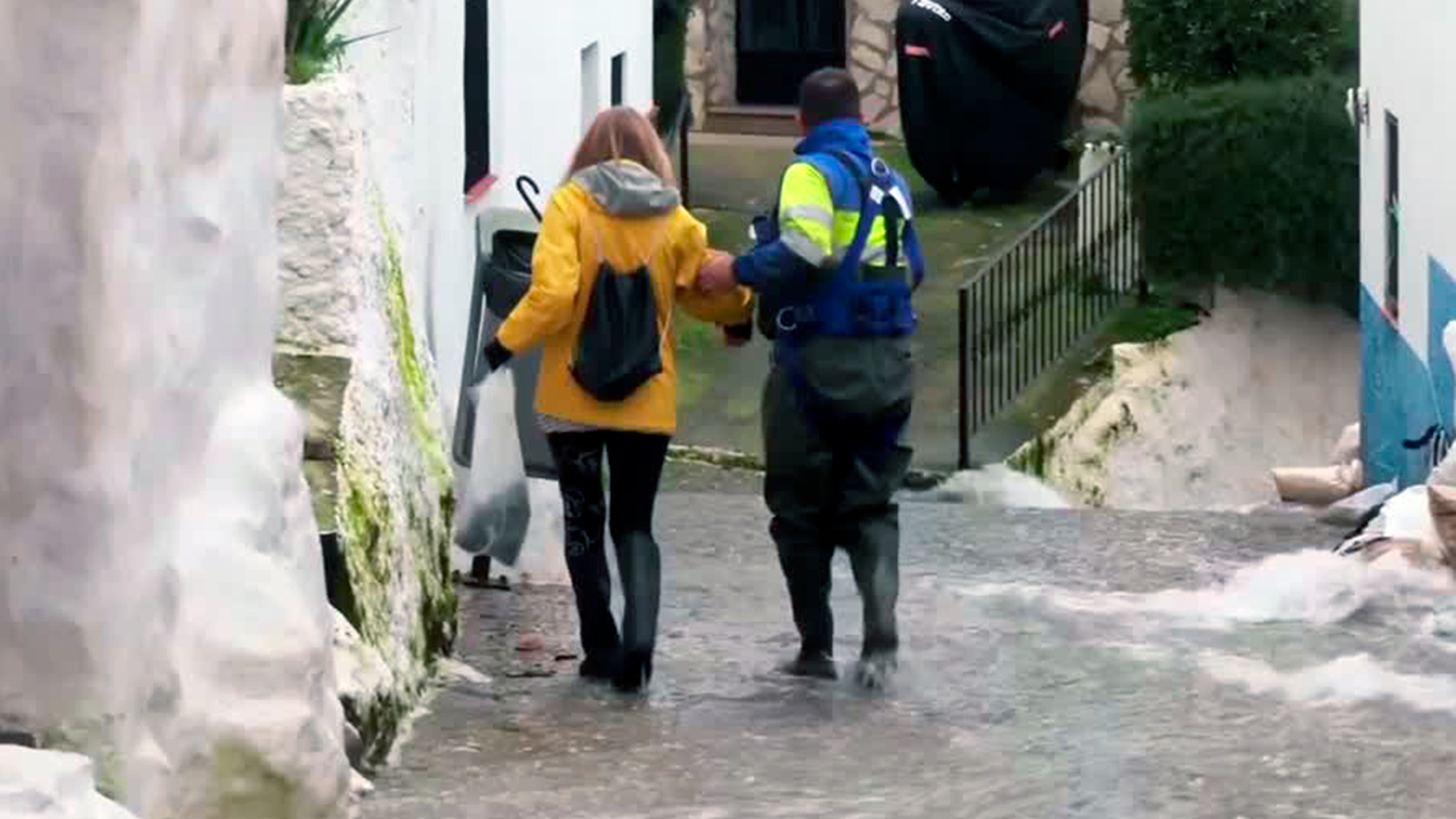 Moradores da cidade montanhosa espanhola de Ubrique, na Andaluzia, caminharam por ruas alagadas no domingo, 8, enquanto torrentes de água varriam a região.