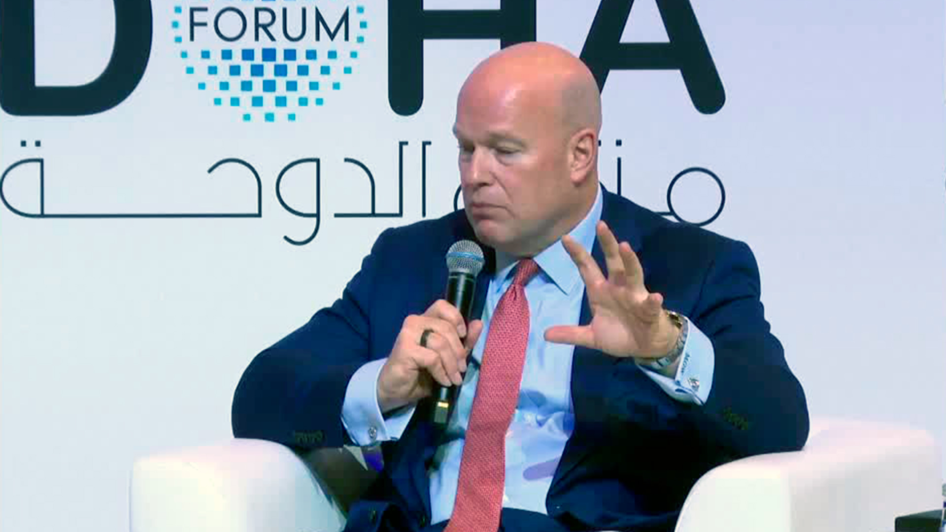 Matthew Whitaker, embaixador dos EUA na OTAN, durante o Fórum de Doha / Foto: Reprodução Reuters