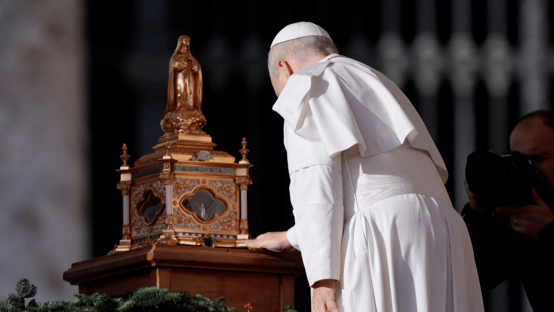 Papa Leão XIV diante de relíquia de Santa Teresinha do Menino Jesus na Audiência Geral desta quarta-feira, 31 / Foto: REUTERS/Remo Casilli